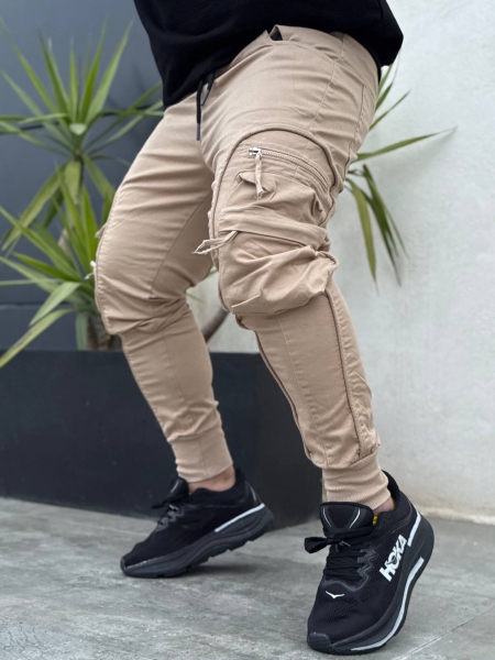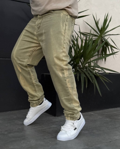 شلوار شش جیب مردانه مدل دمپا گت نخودی جنس کتان