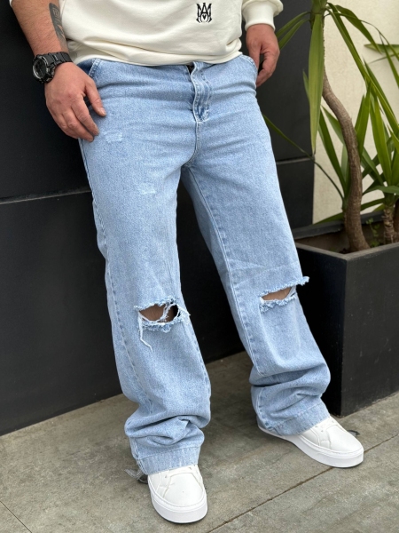 شلوار جین مردانه مدل نیم بگ زانو زاپ دار برند Fashion آبی روشن