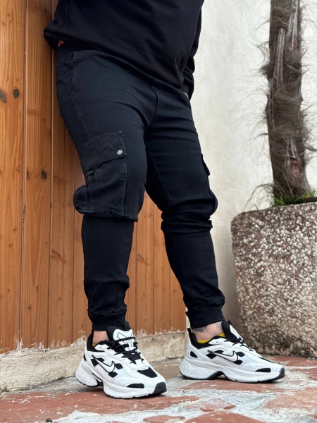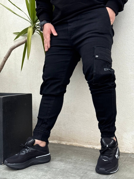 شلوار مردانه کبریتی مشکی مدل زنجیر دار