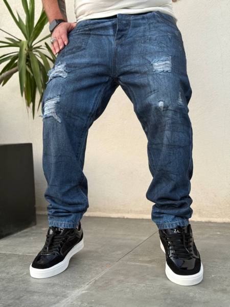 شلوارم جین مردانه مدل مام فیت زاپ دار رنگ ابی تیره