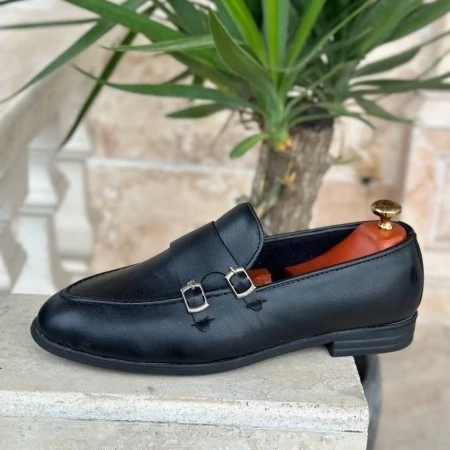 کفش کالج مردانه مدل سگک دار ساده مشکی