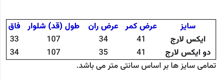 سایز بندی XL 2XL.