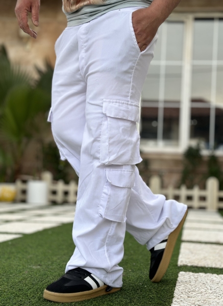 شلوار اسلش مردانه کارگو سفید