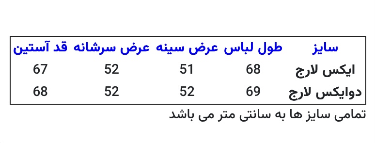 توجه : به راهنمای سایزبندی دقت فرمایید