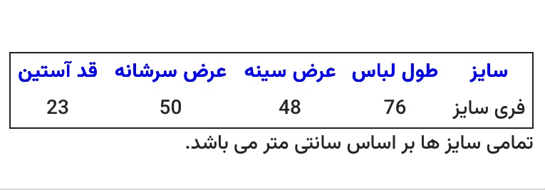 توجه: به راهنمای سایزبندی توجه بفرمایید