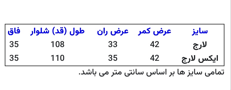 به راهنمای سایز بندی توجه فرمایید