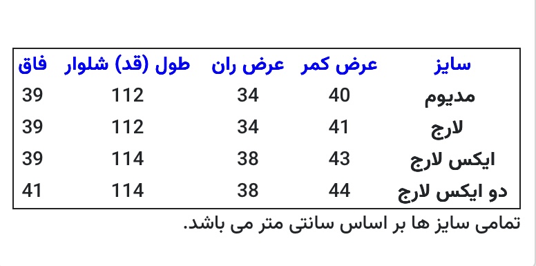 توجه: به راهنمای سایزبندی توجه فرمایید