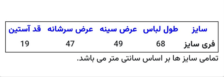 توجه: به راهنمای سایز بندی توجه فرمایید