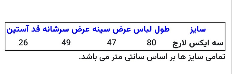 به راهنمای سایز بندی توجه فرمایید