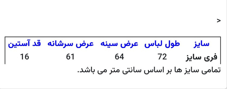 توجه: به راهنمای سایز بندی توجه فرمایید
