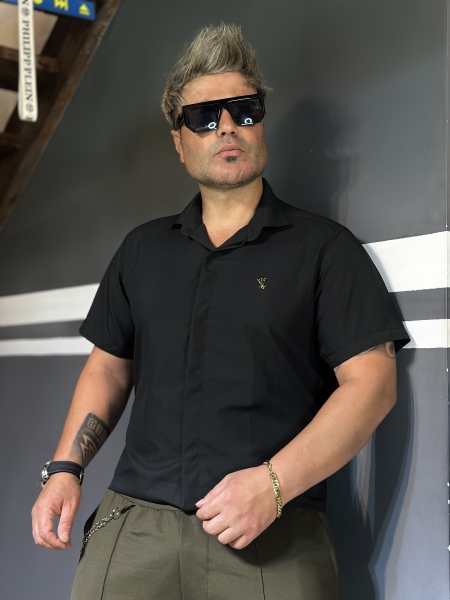 پیراهن استین کوتاه ساده مشکی مردانه یک انتخاب عالی برای کسانیست که به دنبال ترکیب راحتی و استایل شیک هستند.