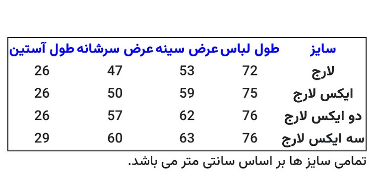 توجه: به راهنمای سایز بندی توجه فرمایید