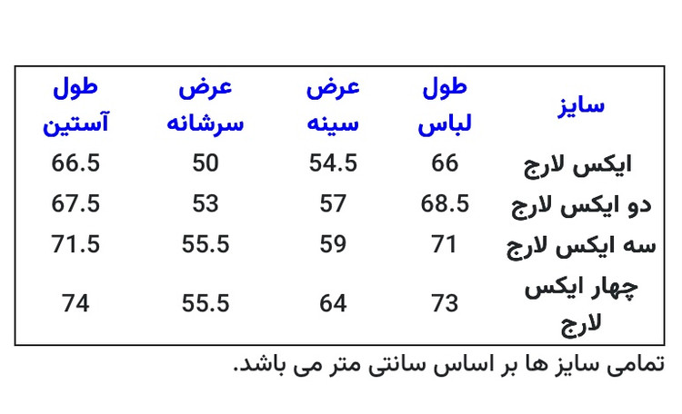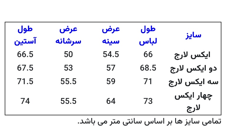 به راهنمای سایز بندی توجه نمایید