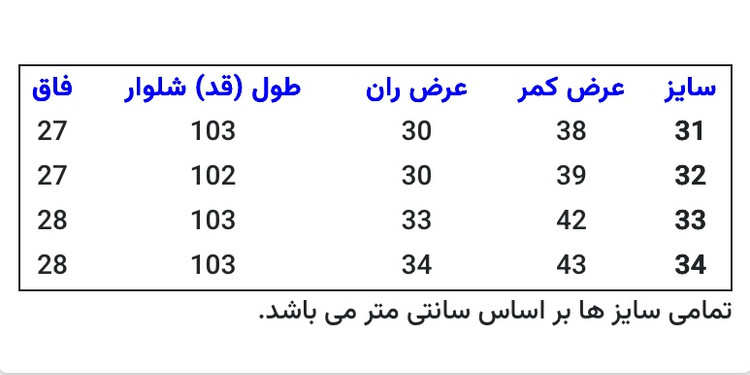 به راهنمای سایز بندی توجه فرمایید