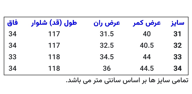 پشت کمر کش کار شده و جلوی شلوار دکمه خور است