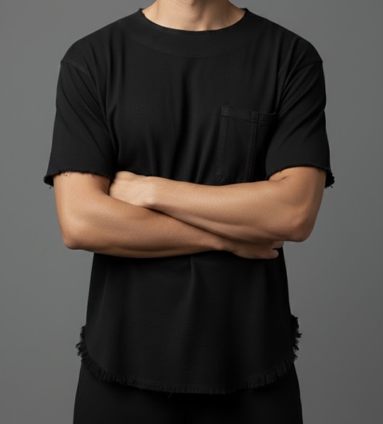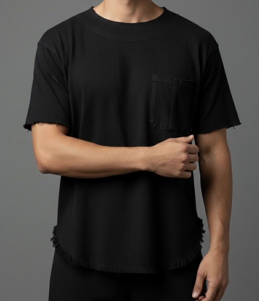 توجه: پایین تیشرت و پایین استین ان مطابق تصویر ریش ریش میباشد