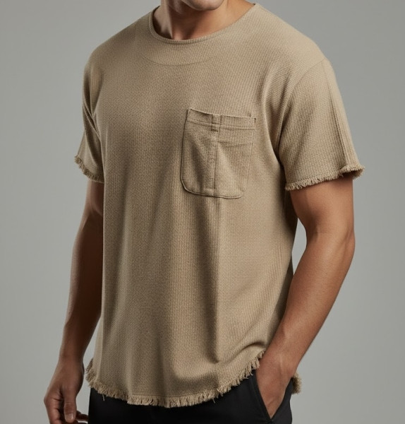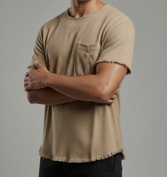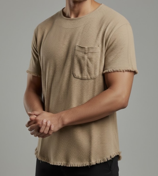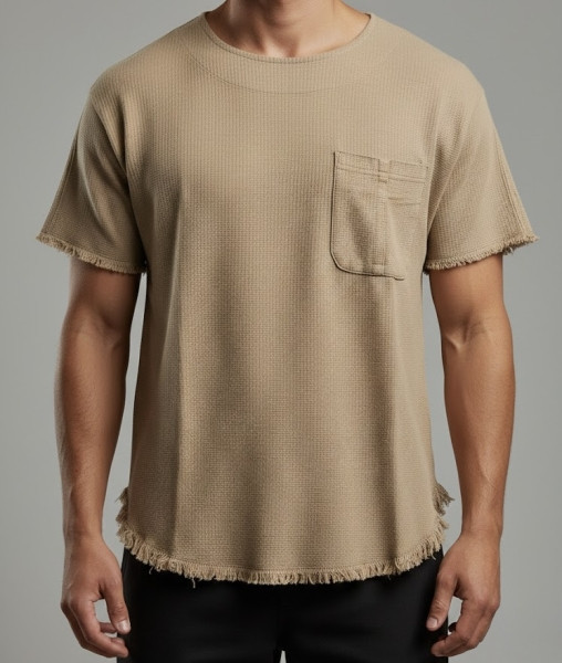 تیشرت استین کوتاه مردانه مدل کنفی کرمی