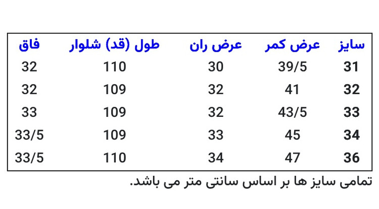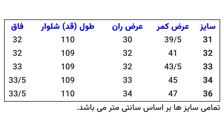 به راهنمای سایزبندی توجه فرمایید